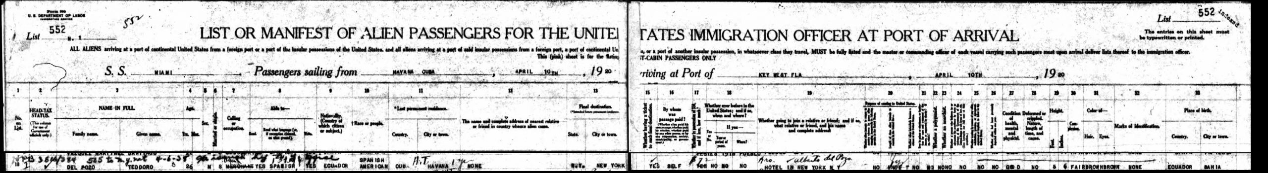 | US Gov’t | 1920 (April) Teodoro arrival at Key West from Havana in transit to “brother” Alberto in NY |