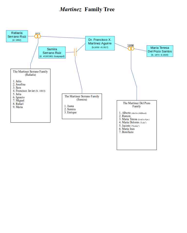 Descendants of Francisco and Maria Teresa have fond memories of Edna and Julio Aguirre. Julio was the brother-in-law of Dr Martinez' 8th child Rafael.
