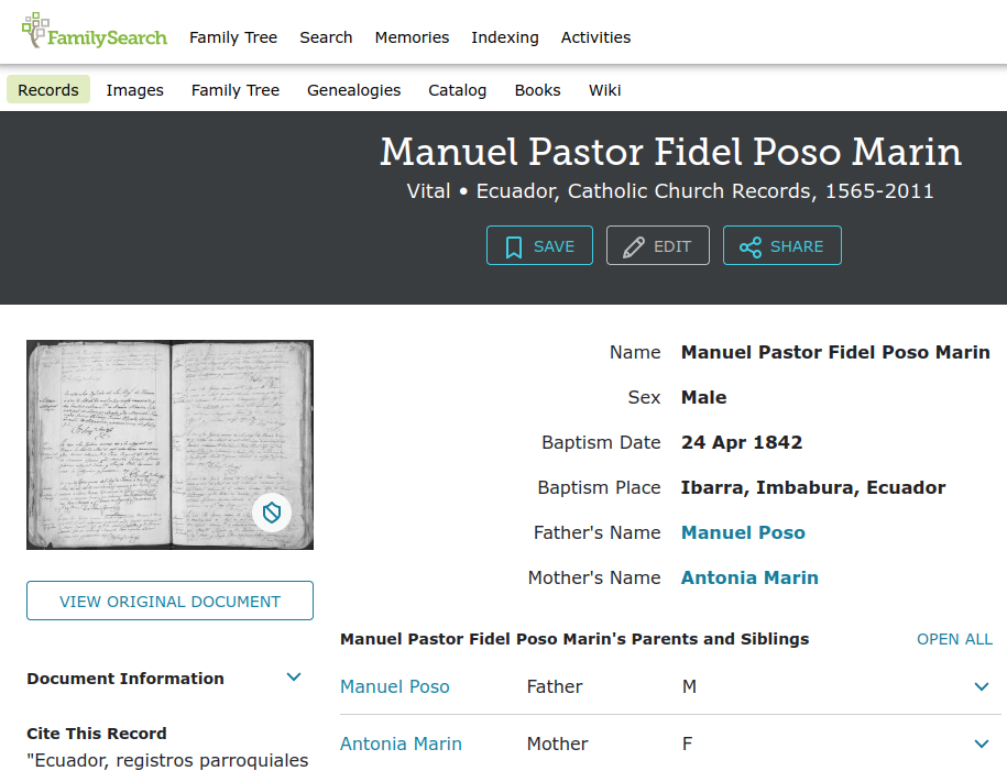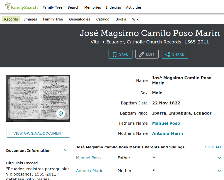 Birth Record NAME: José Magsimo Camilo Poso Marin (Brother of Pastor Del Pozo Marin)